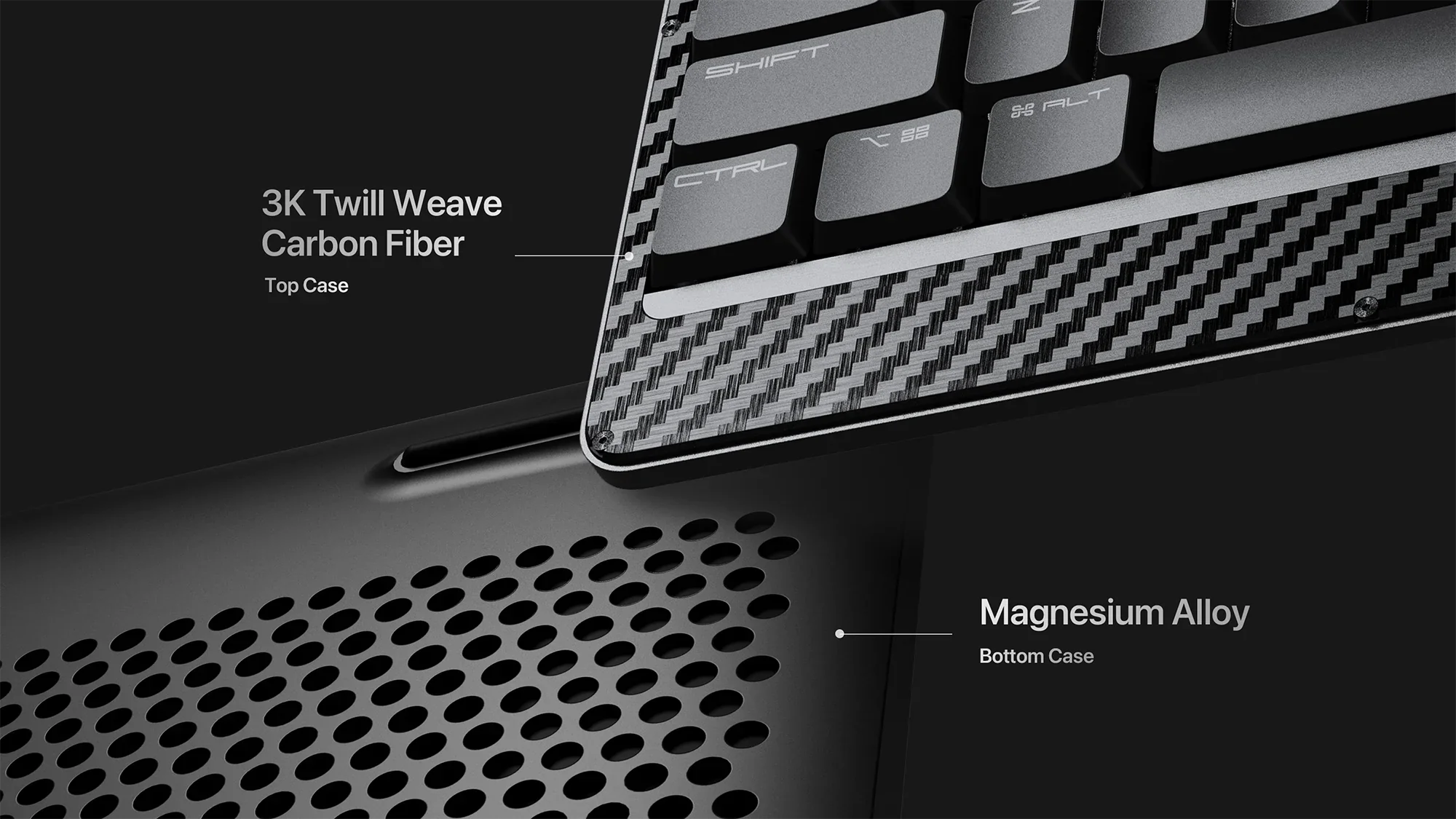 Vẻ ngoài nổi bật với vỏ trên làm từ sợi carbon 3K cao cấp và vỏ dưới hợp kim magiê, Lofree EDGE không chỉ bền bỉ mà còn tạo nên phong cách sang trọng, đẳng cấp cho không gian làm việc của bạn.