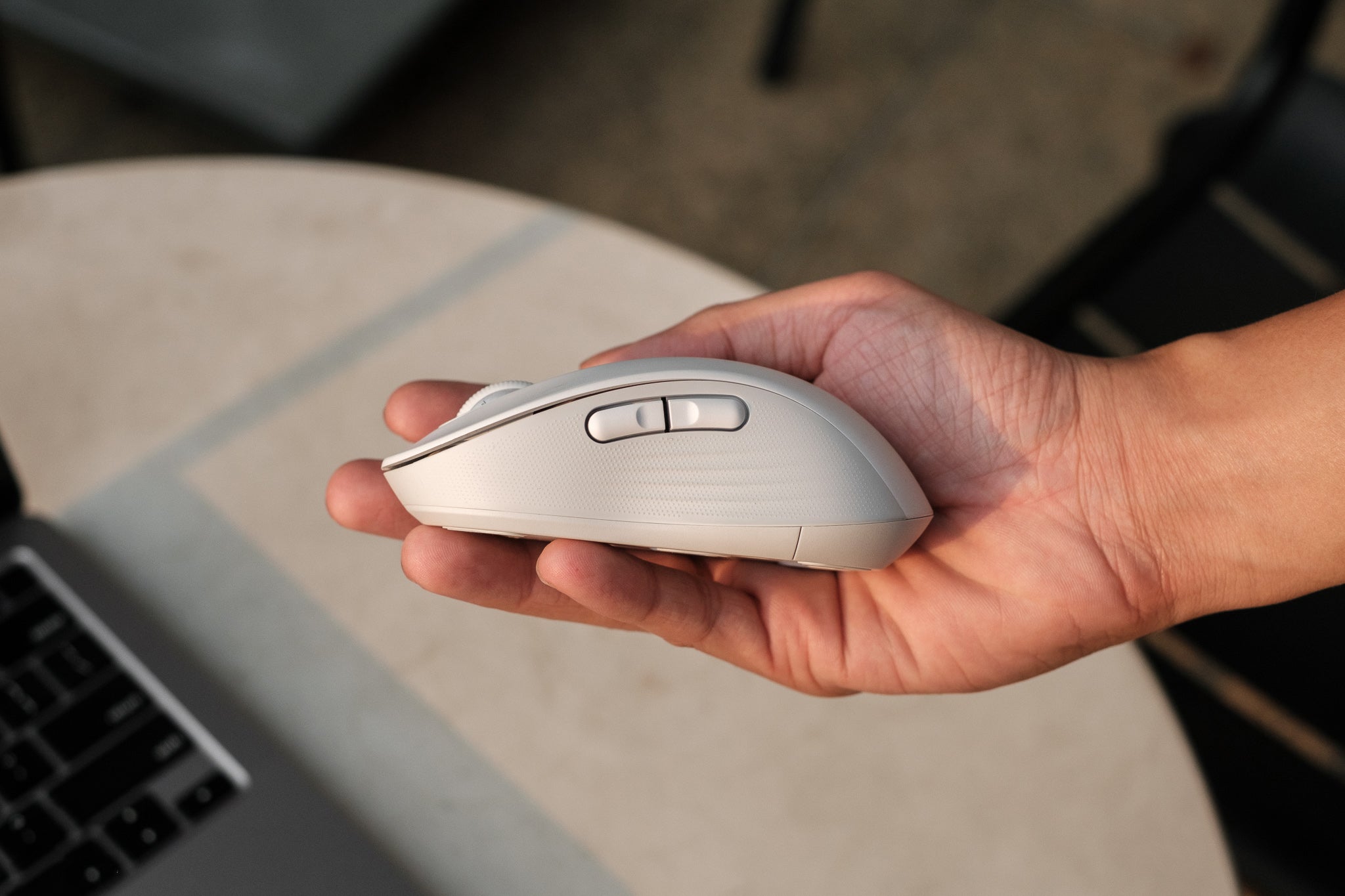 - Thiết kế công thái học: Chuột M650 có thiết kế hiện đại, phù hợp với các bàn tay có kích thước trung bình đến lớn. Với các đường cong mềm mại và bề mặt cao su, chuột mang đến cảm giác thoải mái khi sử dụng lâu dài.