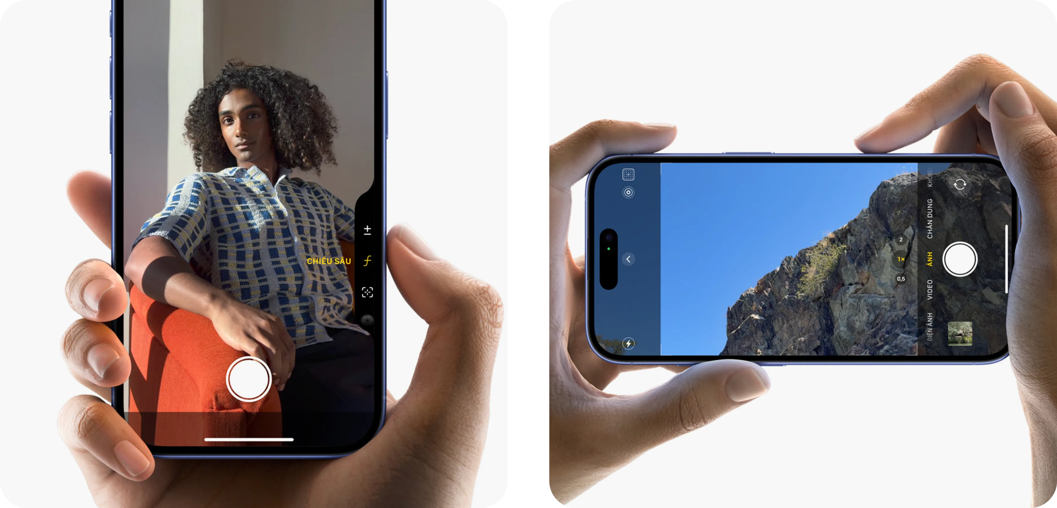 Hệ thống camera linh hoạt trên iPhone 16 mang đến khả năng chụp ảnh tuyệt đẹp ở mọi khoảng cách. Camera Fusion 48MP hai trong một cho phép chụp ảnh độ phân giải cao sắc nét hoặc phóng to bằng Telephoto với chất lượng quang học 2x.