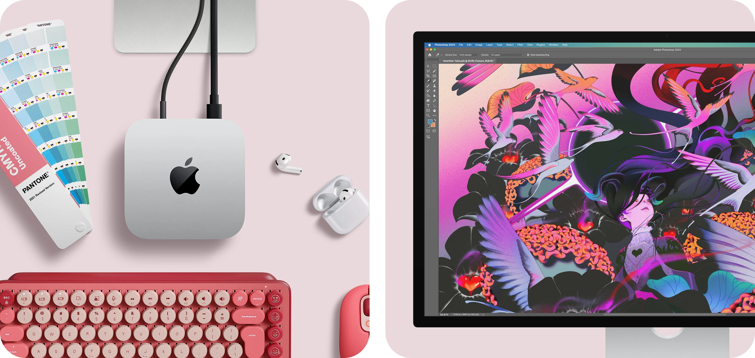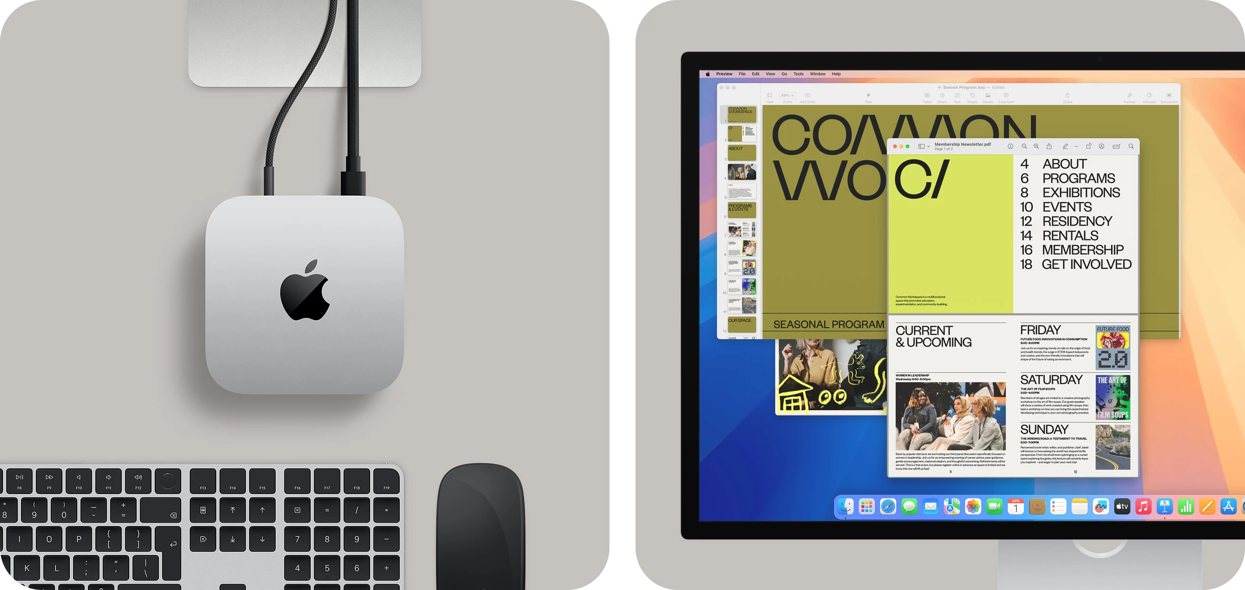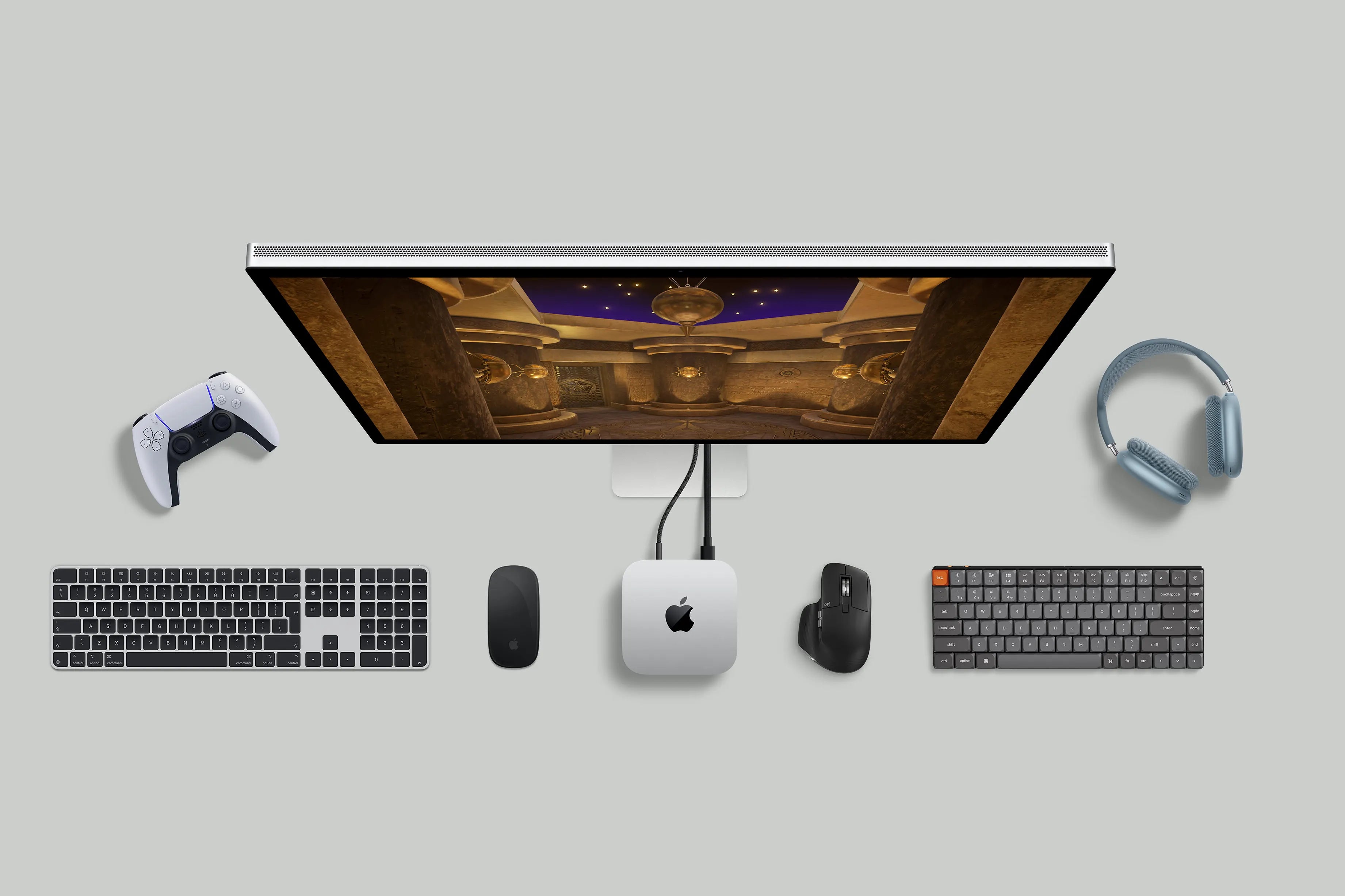 Mac mini được thiết kế để kết hợp với Studio Display, Magic Keyboard và Magic Mouse, nhưng cũng tương thích với các màn hình và phụ kiện khác, cho phép bạn tùy ý phối hợp.